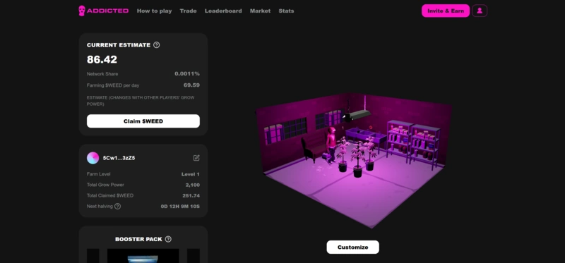 V Addicted.fun vaša Grow Power določa, koliko $WEED zaslužite, glede na število in redkost rastlin. Mystery Seed Packi stanejo 300 $WEED in vsebujejo naključne sorte, pri čemer redkejša semena povečujejo Grow Power in zaslužek.