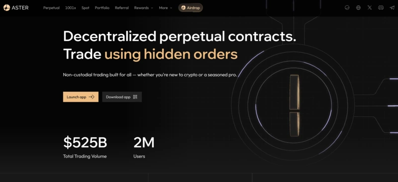 Aster želi premostiti vrzel med centraliziranimi borzami (CEX) in DeFi. Platforma ponuja napredna orodja za trgovanje, vključno s celotnimi order booki, profesionalnim grafikoniranjem in trgovanje z visoko vzvodom do 1001x, hkrati pa poudarja lastništvo sredstev.