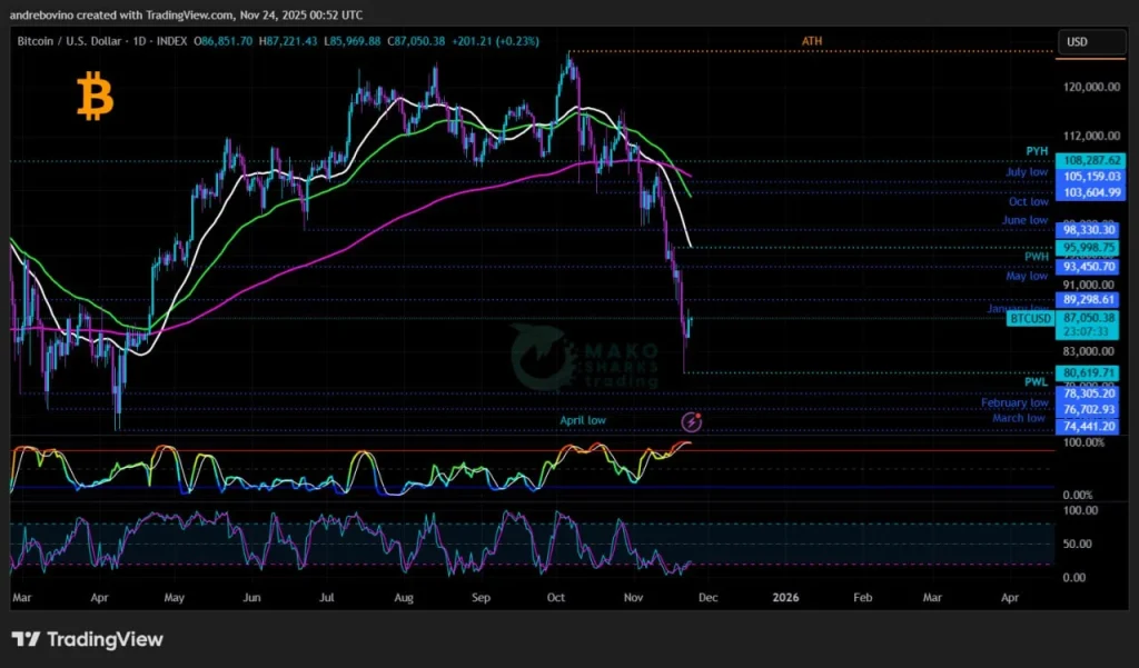 Bitcoin začne svoj teden pri 86,8k! Nazgûli krožijo nad njim, Hopium komaj kaplja, vsi pa si zastavljajo isto vprašanje: Ali je to začetek strukturnega povratnega udarca ali samo še ena stranska pustolovina skozi Mordor? Bikovi iščejo iskro, medvedi ostrožijo svoje kremplje, sveče pa bodo kmalu spregovorile. ✨ 🕯 👐