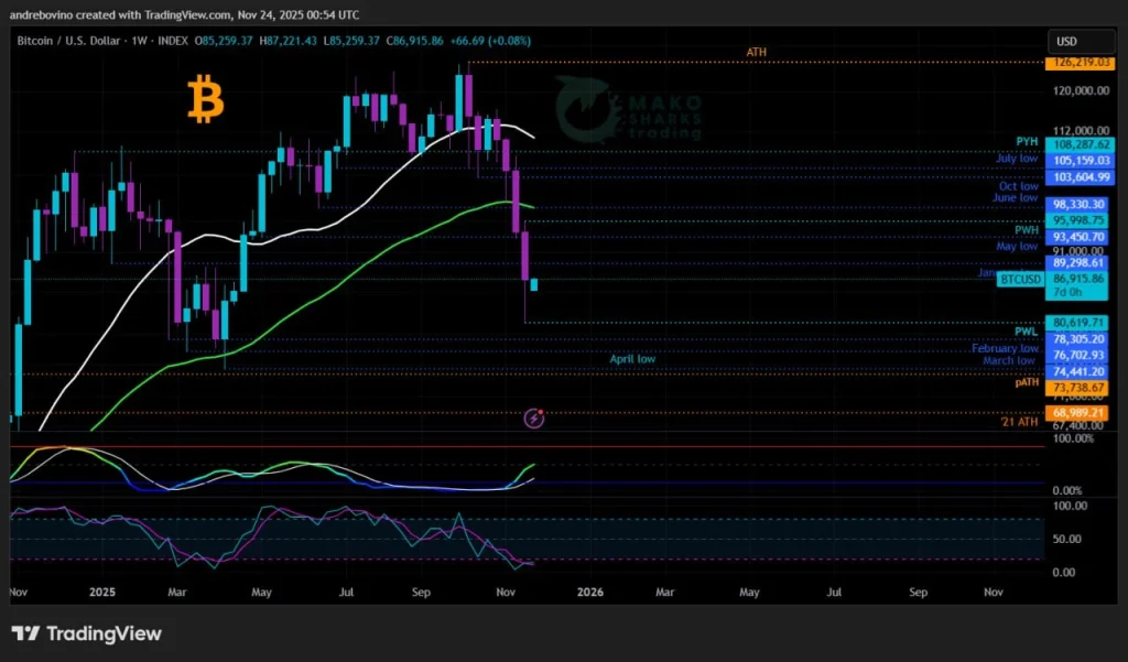 BTC Tedenska Tehnična Analiza Mako Sharks