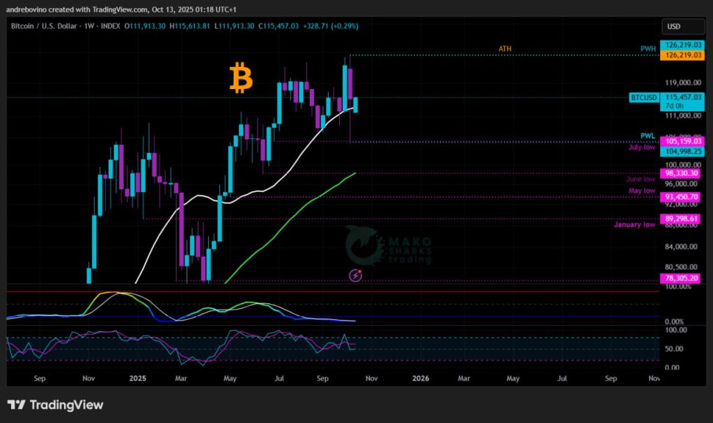 BTC Tedenska Tehnična Analiza od Mako Sharks