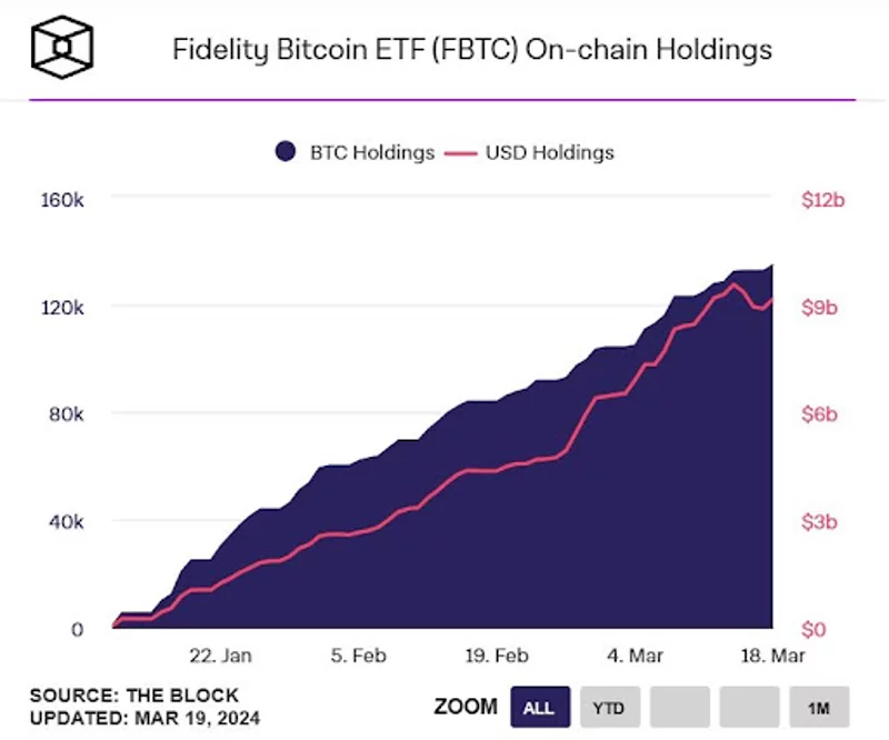 Družba Fidelity je po januarski odobritvi svojega promptnega sklada ETF za bitcoine uspešno zbrala impresivnih 132.570 bitcoinov, kar pomeni vrednost sredstev, ki presega 9 milijard USD, in s tem zaznamovala svoj prvi podvig na področju promptnih produktov za trgovanje s kriptovalutami na borzi.