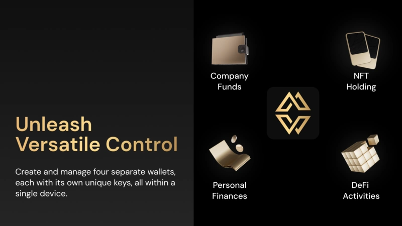 Ena od ključnih prednosti Cypherock X1 je njegova zmožnost upravljanja do štirih ločenih denarnic znotraj iste naprave. Ne glede na to, ali potrebujete denarnice za osebno rabo, DeFi dejavnosti, NFT-je ali sredstva podjetja, Cypherock X1 vam omogoča, da jih upravljate z enega mesta. To ga naredi idealnega za uporabnike z raznolikimi kriptografskimi potrebami, ki želijo svoja sredstva organizirati v eni denarnici.