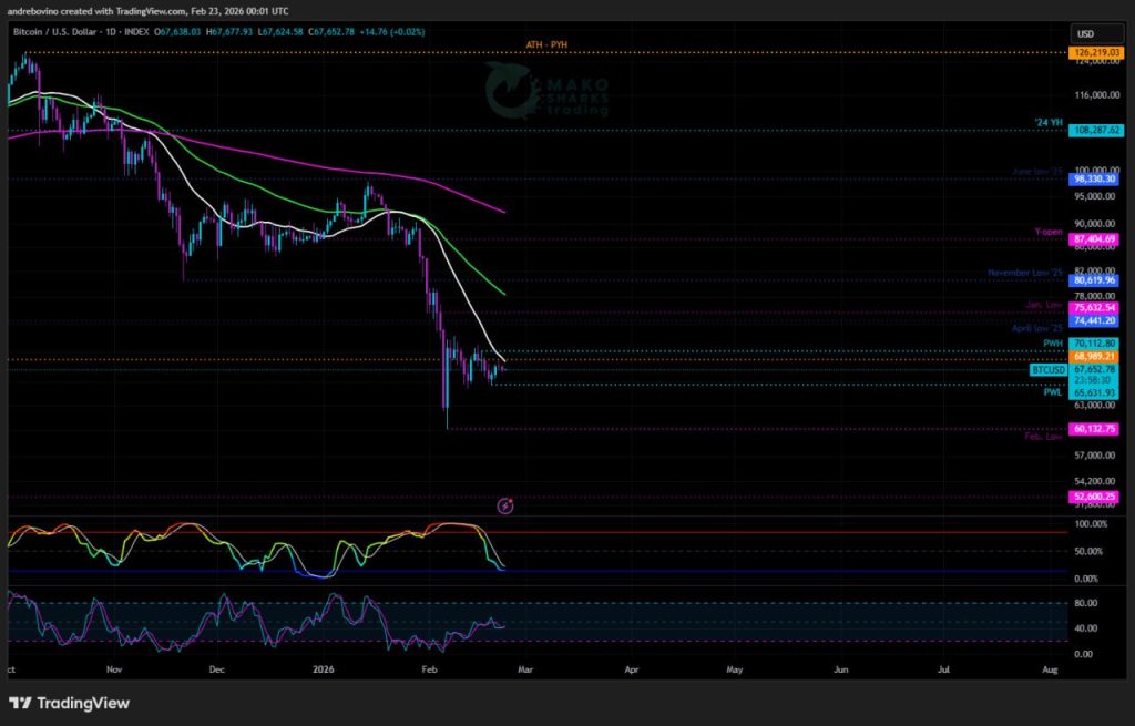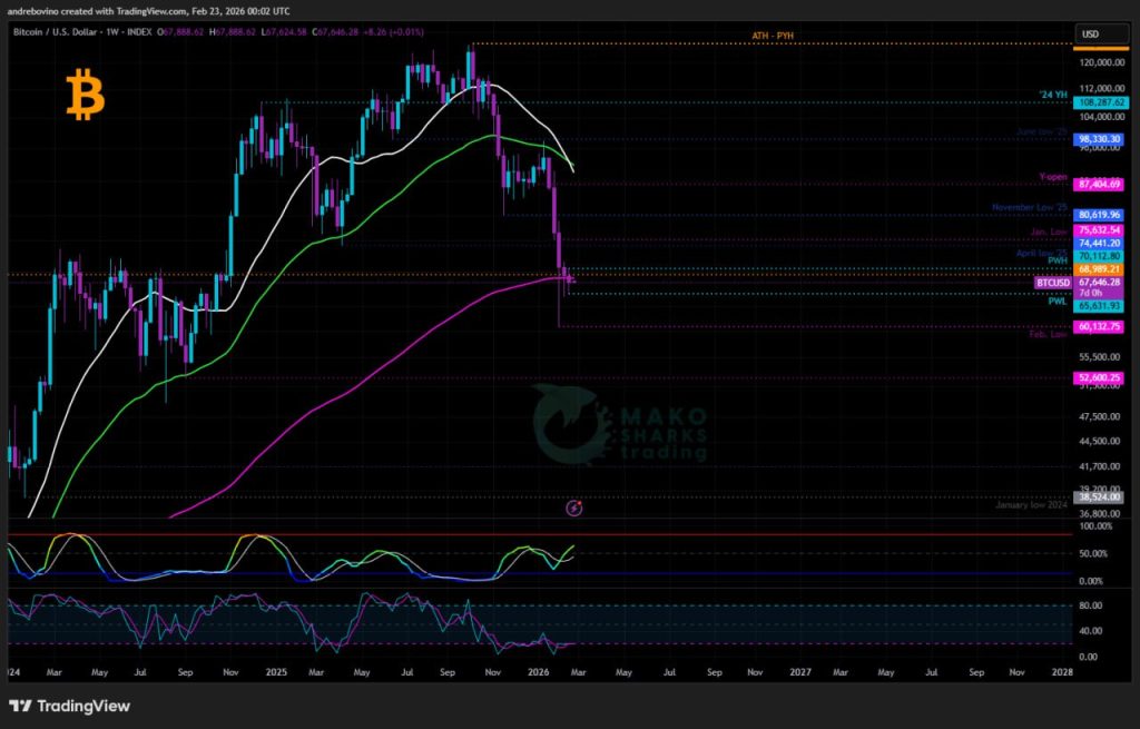 Tedenska tehnična analiza BTC, avtor Mako Sharks