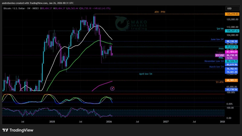 Tedenska tehnična analiza BTC, avtor Mako Sharks