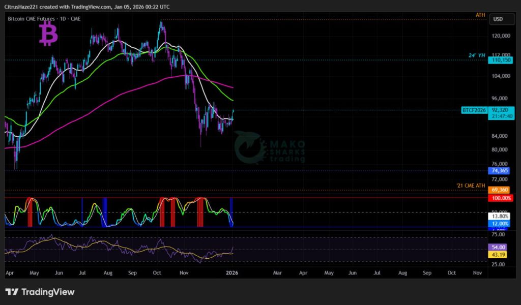 Medvedi vstopajo v novo leto udobno, še vedno držijo prevladujoči položaj, krožijo nad kriptosvetom z Nazgûli. Idealno za medvede je, da območje 95k/96k še naprej deluje kot odpor, medtem ko vsaka dnevna zaprtja pod PWL pri 87,6k skoraj zagotovo pošlje Bitcoin v izziv na “novembrski minimum ’24” pri 80,6k, saj ponovni neuspehi pri obnovi tega nivoja še naprej ustvarjajo nov pritisk za prodajo.