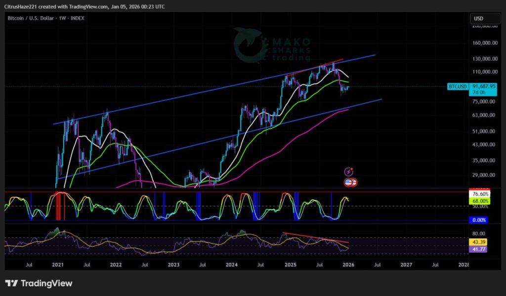 Tedenska tehniška analiza BTC od Mako Sharks